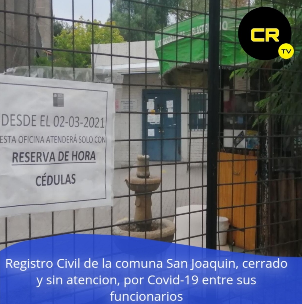 Registro Civil de comuna San Joaquin cerrado y sin atencion hasta el martes 23 marzo, por caso de Covid-19 en funcionarios
