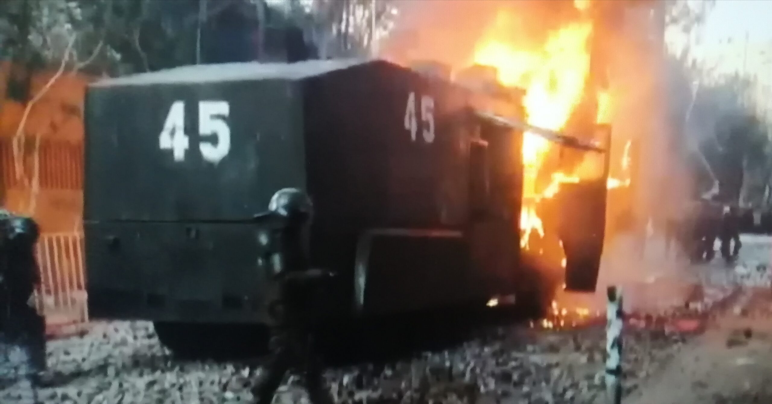 Vehiculo de Carabineros terminó reducido a cenizas tras ataque con bombas molotov en Santiago
